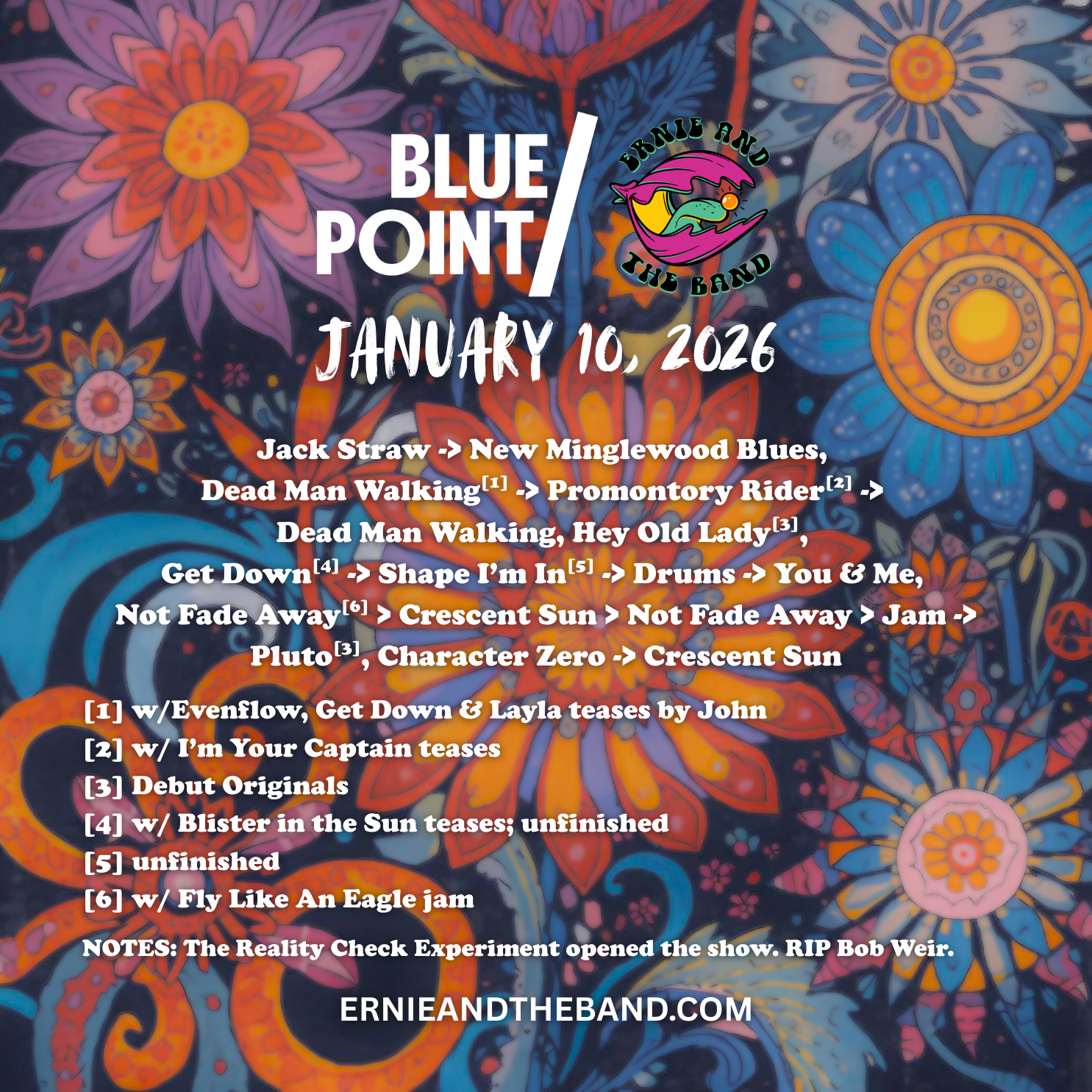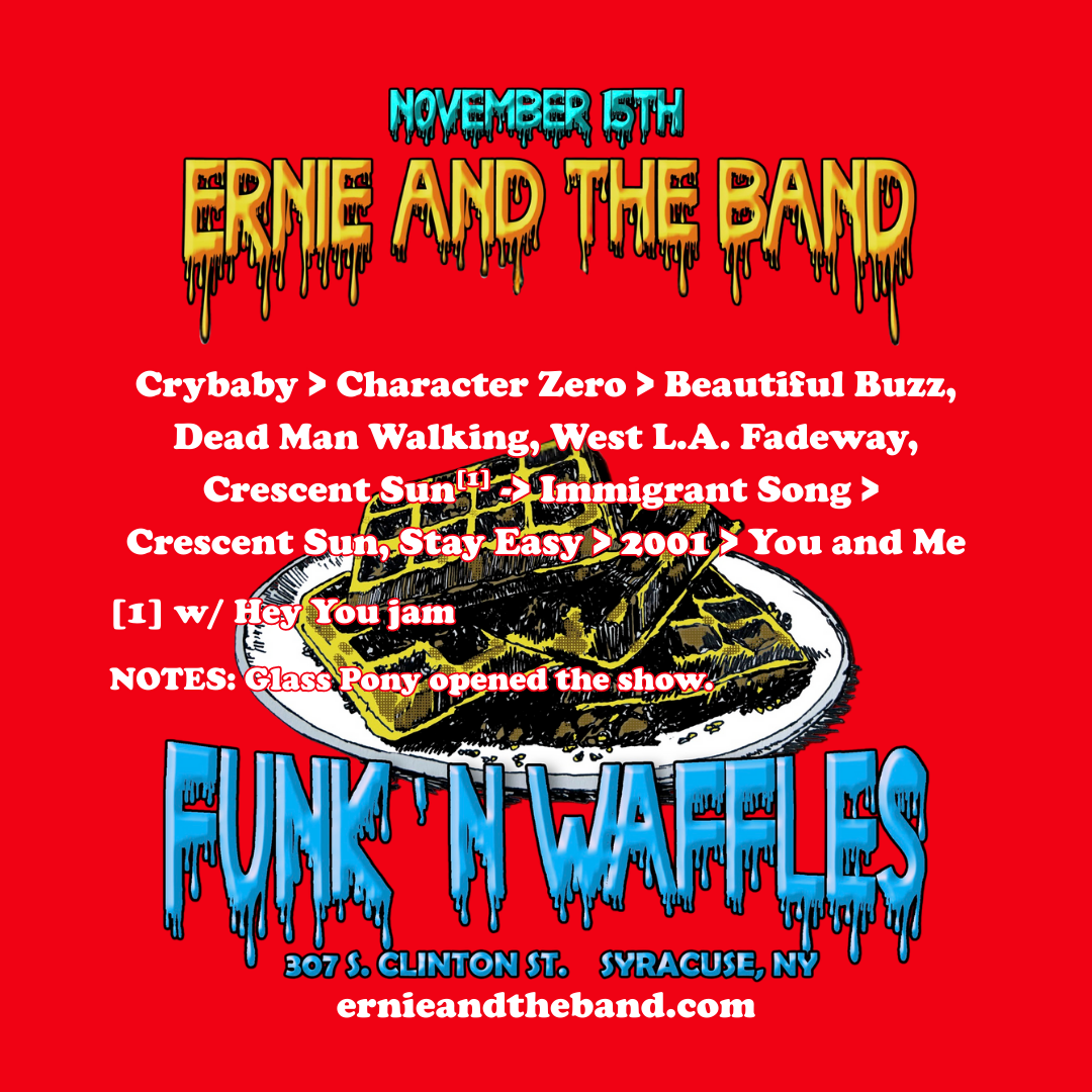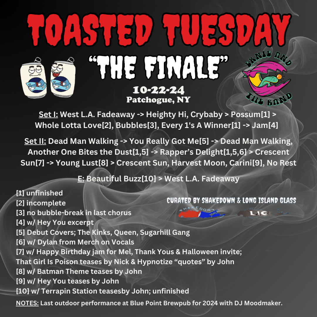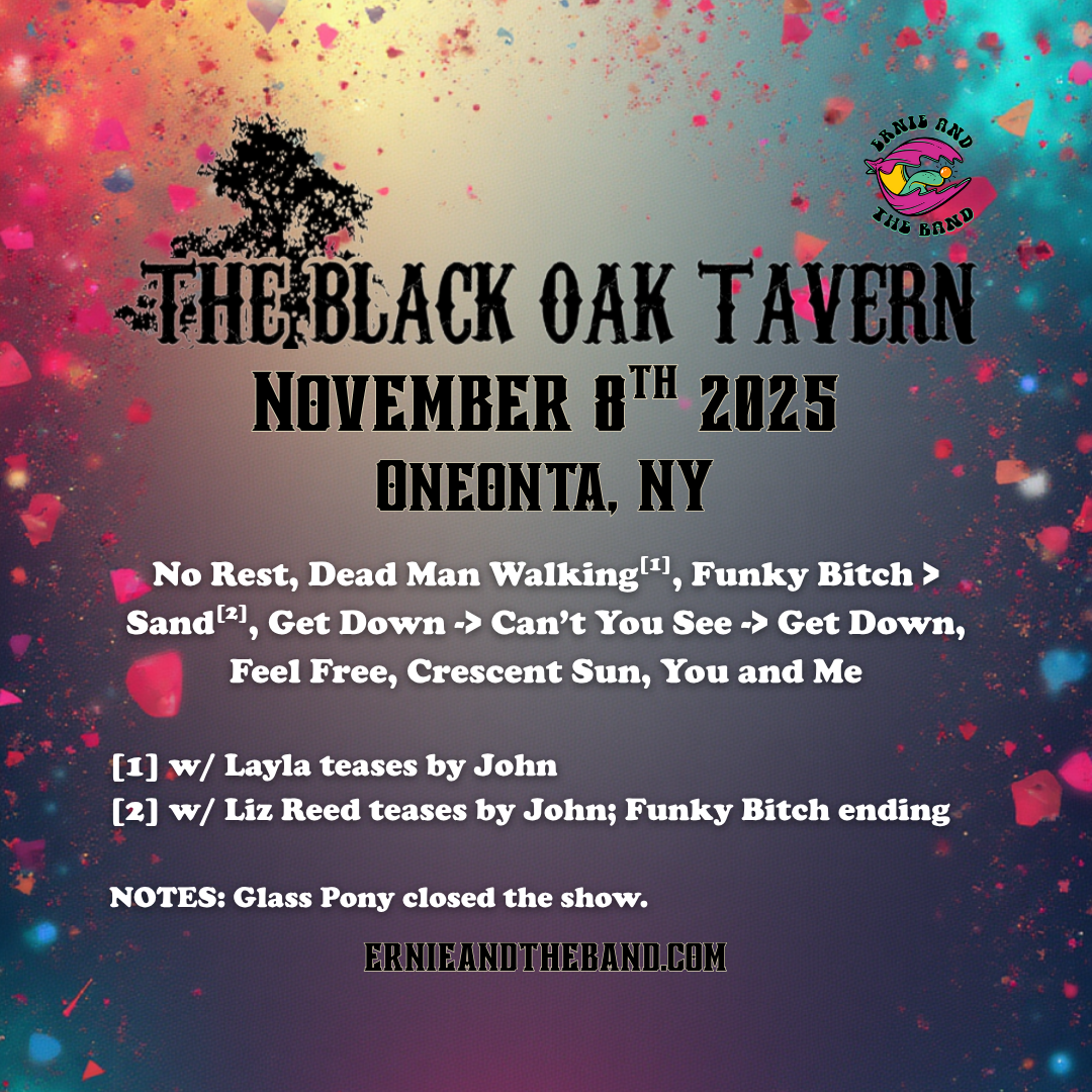 NOTES: Sunshine of Your Love tease by John & Nick before Dead Man Walking. Doodles & Oph performed during setbreak. Brief sword fight with the Birthday Pirate before Shakedown Street. (couldn’t fit this on the graphic!)
